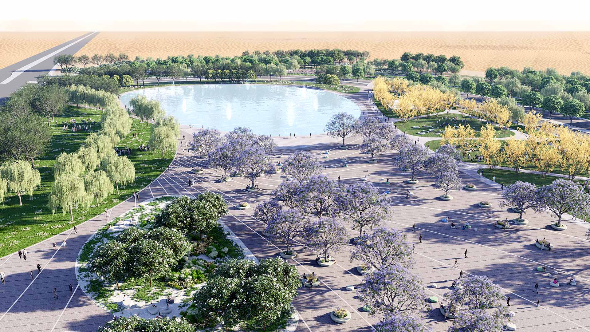 Sudair Lake Park demonstrates how public landscape can be integrated within an industrial city when design is developed alongside infrastructure and operational requirements.